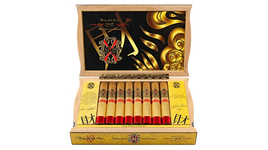 Như thể thương hiệu Fuente Fuente OpusX chưa đủ bí ẩn, giờ đây lại xuất hiện một phiên bản mới trên các kệ hàng, và người sáng tạo ra nó, Carlos Fuente Jr., lại không tiết lộ nhiều thông tin. Được gọi là ForbiddenX Templo de Oro, những điếu xì gà này đã đến tay các nhà bán lẻ vào cuối tháng 12 như một món quà bất ngờ cuối năm.