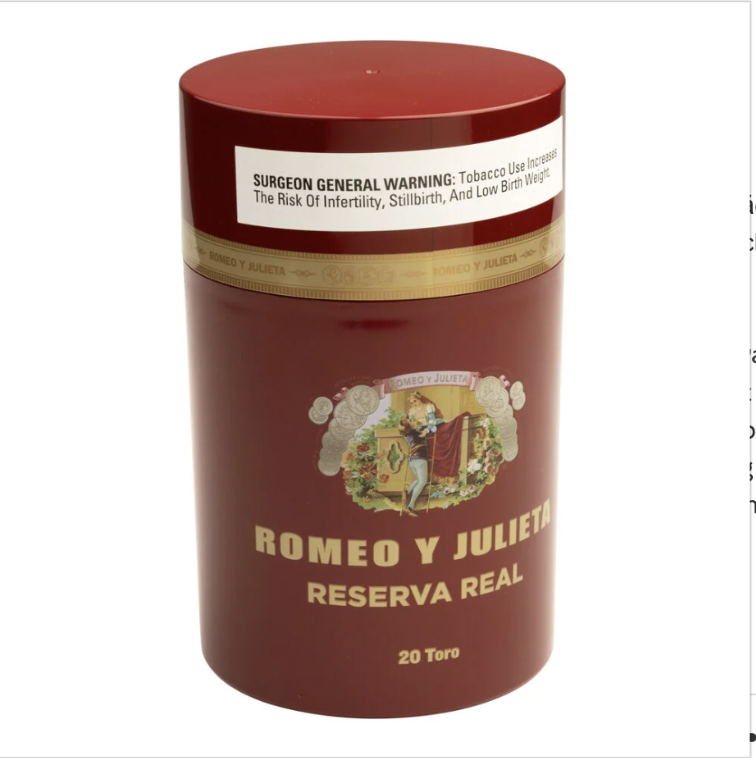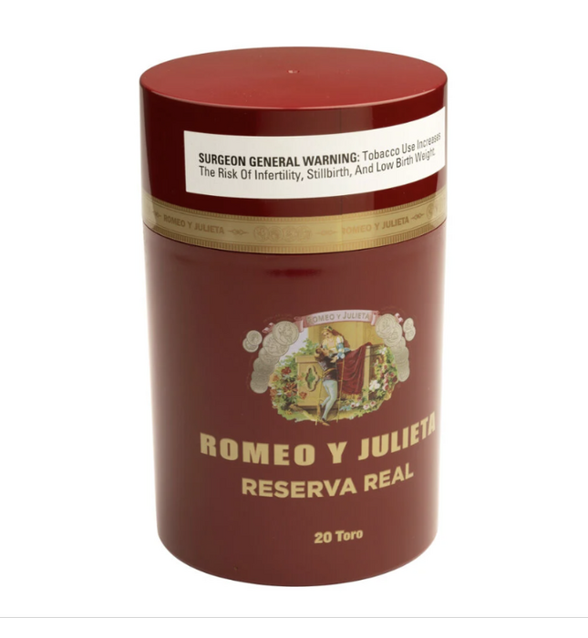 Romeo y Julieta Reserva Real Toro Jar là một bộ quà tặng thanh lịch hoặc món quà cá nhân dành cho những ai yêu thích một trong những báu vật thực sự của ngành công nghiệp xì gà. Sự pha trộn giữa lá bọc Ecuador Connecticut, lá binder Nicaragua và lá filler từ Cộng hòa Dominica và Nicaragua này nổi tiếng với sự cân bằng được hiệu chuẩn cẩn thận giữa vị ngọt, gia vị và hương gỗ. Khi châm lửa, Reserva Real tạo ra một trải nghiệm thơm khác biệt so với bất kỳ thứ gì bạn từng thử trước đây—một phần thưởng cho cả bạn và những người sẽ ở bên cạnh bạn trong trải nghiệm hút thuốc đáng nhớ này. Toro Jar có kích thước để bàn và chứa 20 điếu xì gà 6x54 này với mức giá không thể tin được