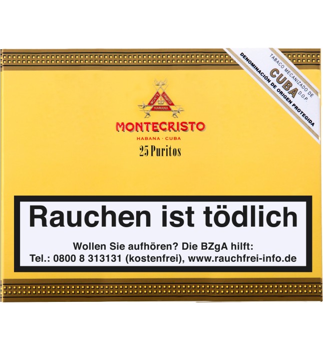 Montecristo Puritos là dòng xì gà mini (cigarillo) được sản xuất tại Cuba, thừa hưởng trọn vẹn di sản và chất lượng từ những điếu Montecristo full-size. Đây là minh chứng cho việc bạn không cần phải dành hàng giờ đồng hồ để thưởng thức một điếu xì gà Cuba cao cấp.