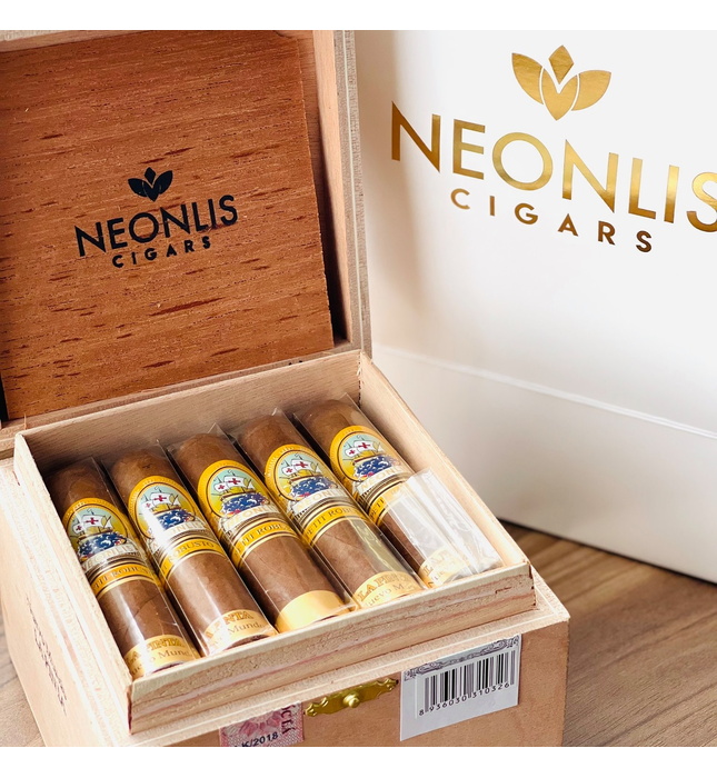 Đặc điểm: Neonlis Nuevo Mundo La Pinta kết thúc một cách sạch sẽ, không để lại vị đắng hoặc gắt, khẳng định chất lượng tuyệt hảo của lá thuốc ủ lâu năm.